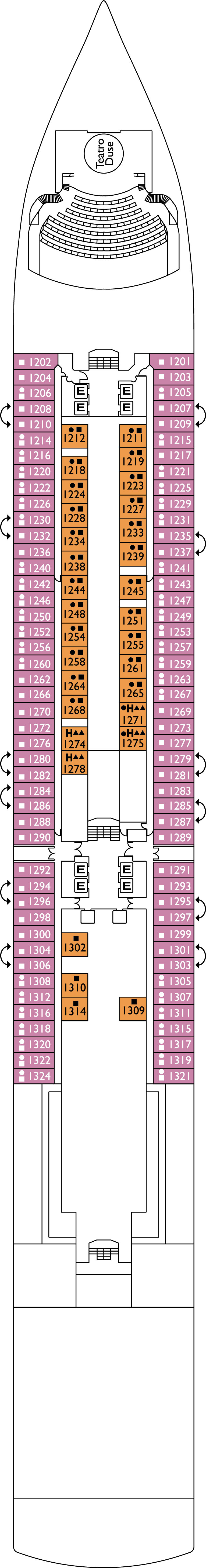 Premium cabins are located on deck 1 Narciso, 6 Ortensia, 7 Ibisco with double bed or 2 single beds that can convert to 3rd / 4th bed. Bathroom with shower and WC, hairdryer, TV, radio, phone, minibar, air conditioning, safe. Option of breakfast in room & 24hour room service.